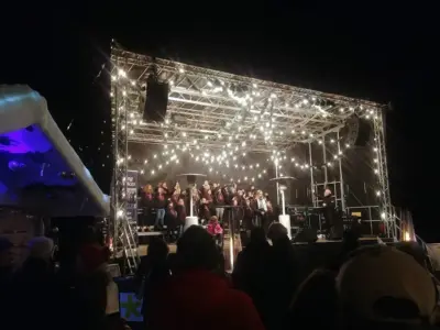 Für den Außenbereich können wir überdachte Bühnen in den Frontbreiten von 6m,- 8m und 10m zur Verfügung stellen.