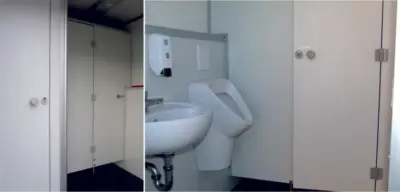 Es stehen getrennte Eingänge mit jeweile 2 Damentoilette und 1 Herrentoilette sowie eine Urinal zur Verfügung.